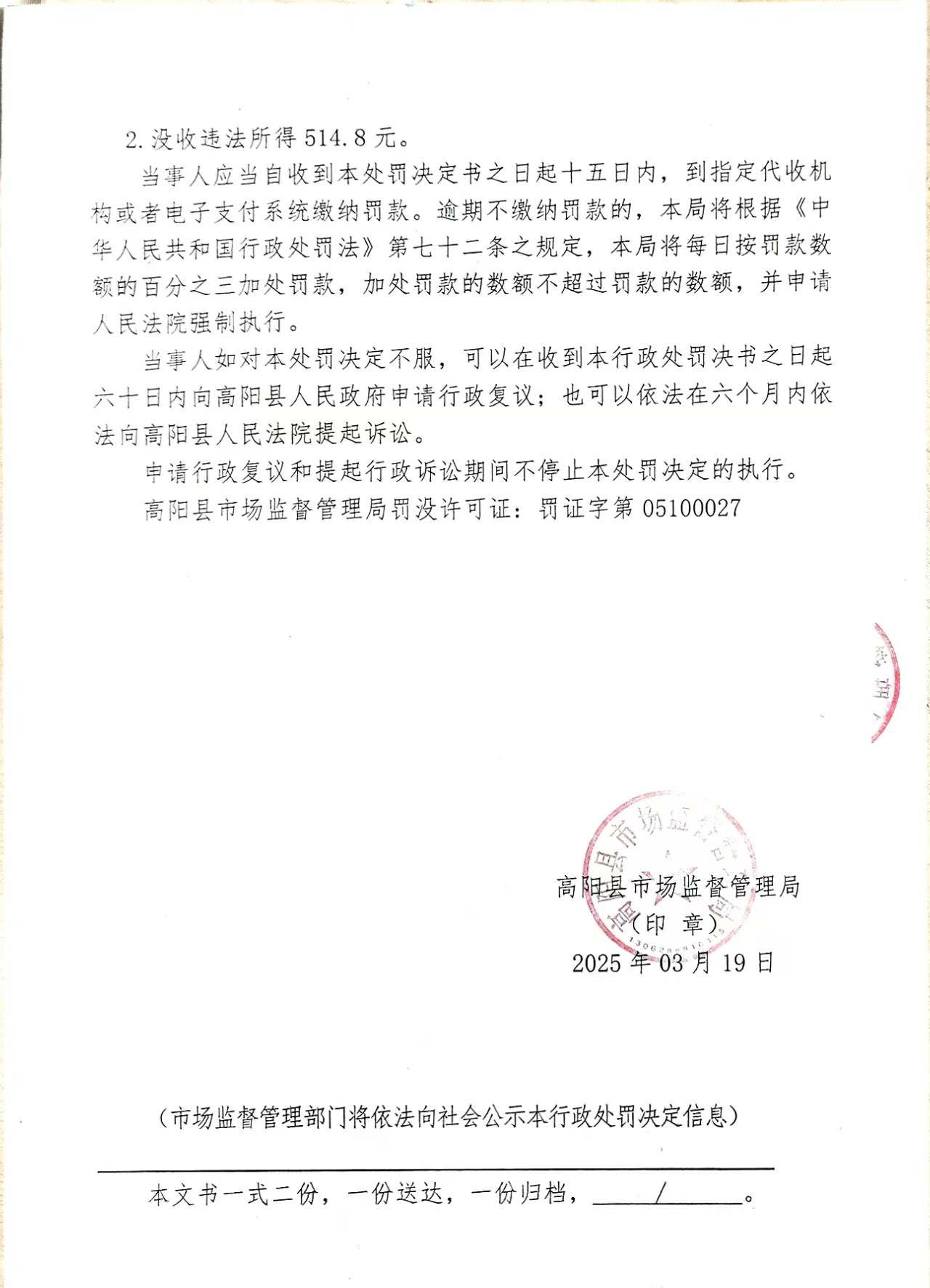 当前位置:首页 > 行政执法公示 > 高阳县市场监督管理局