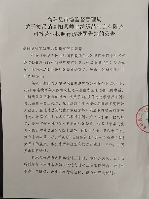 当前位置:首页 > 行政执法公示 > 高阳县市场监督管理局