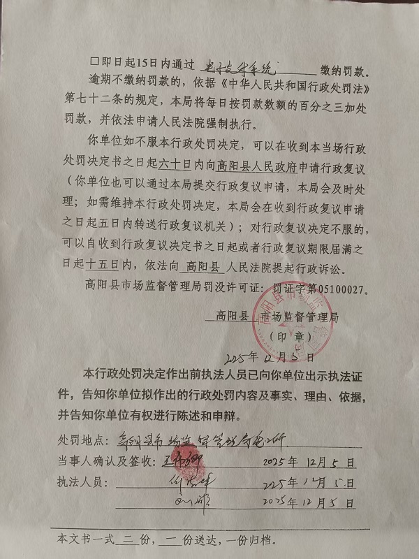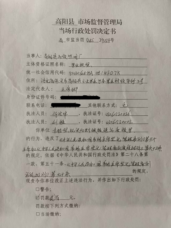 当前位置:首页 > 行政执法公示 > 高阳县市场监督管理局