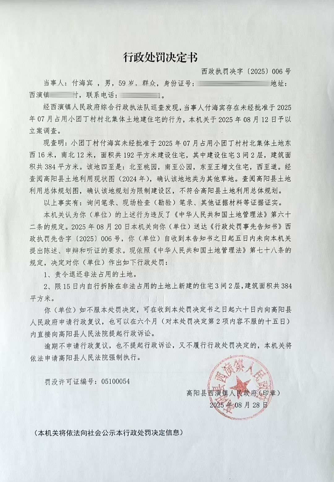 《行政处罚决定书》西政执罚决字〔2025〕006号