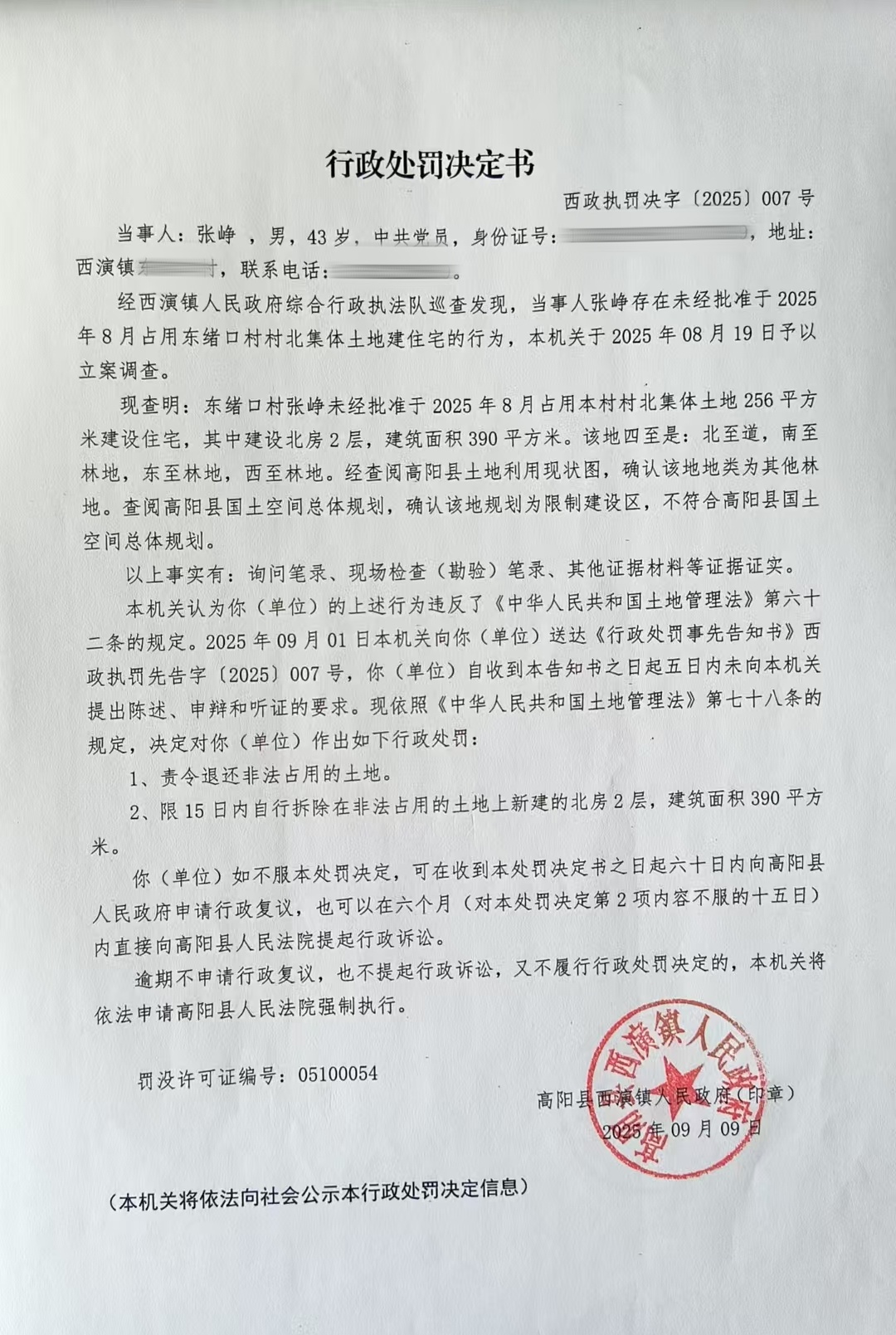 《行政处罚决定书》西政执罚决字〔2025〕007号