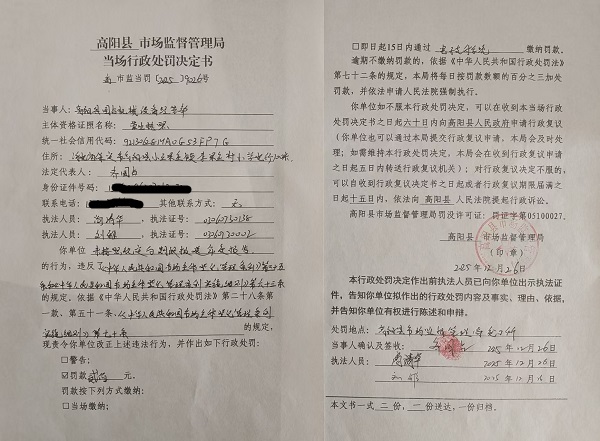 当前位置:首页 > 行政执法公示 > 高阳县市场监督管理局