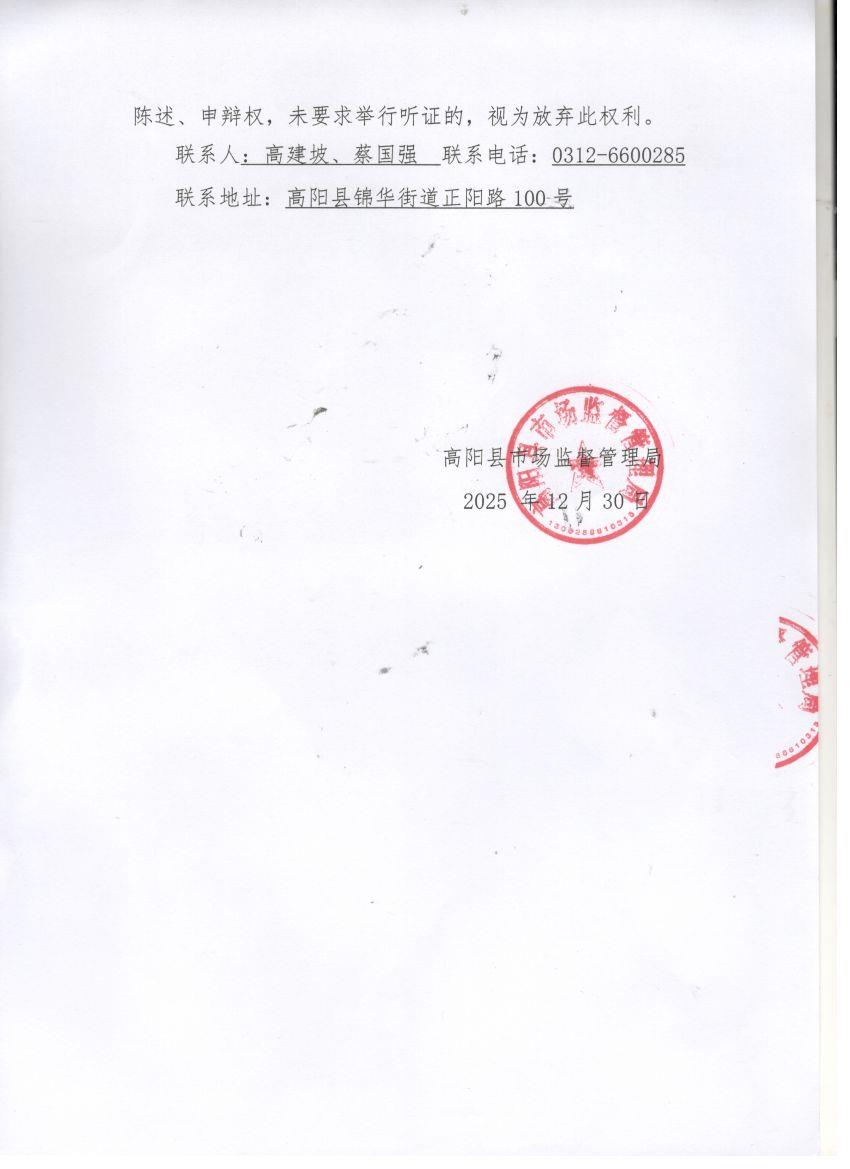 当前位置:首页 > 行政执法公示 > 高阳县市场监督管理局