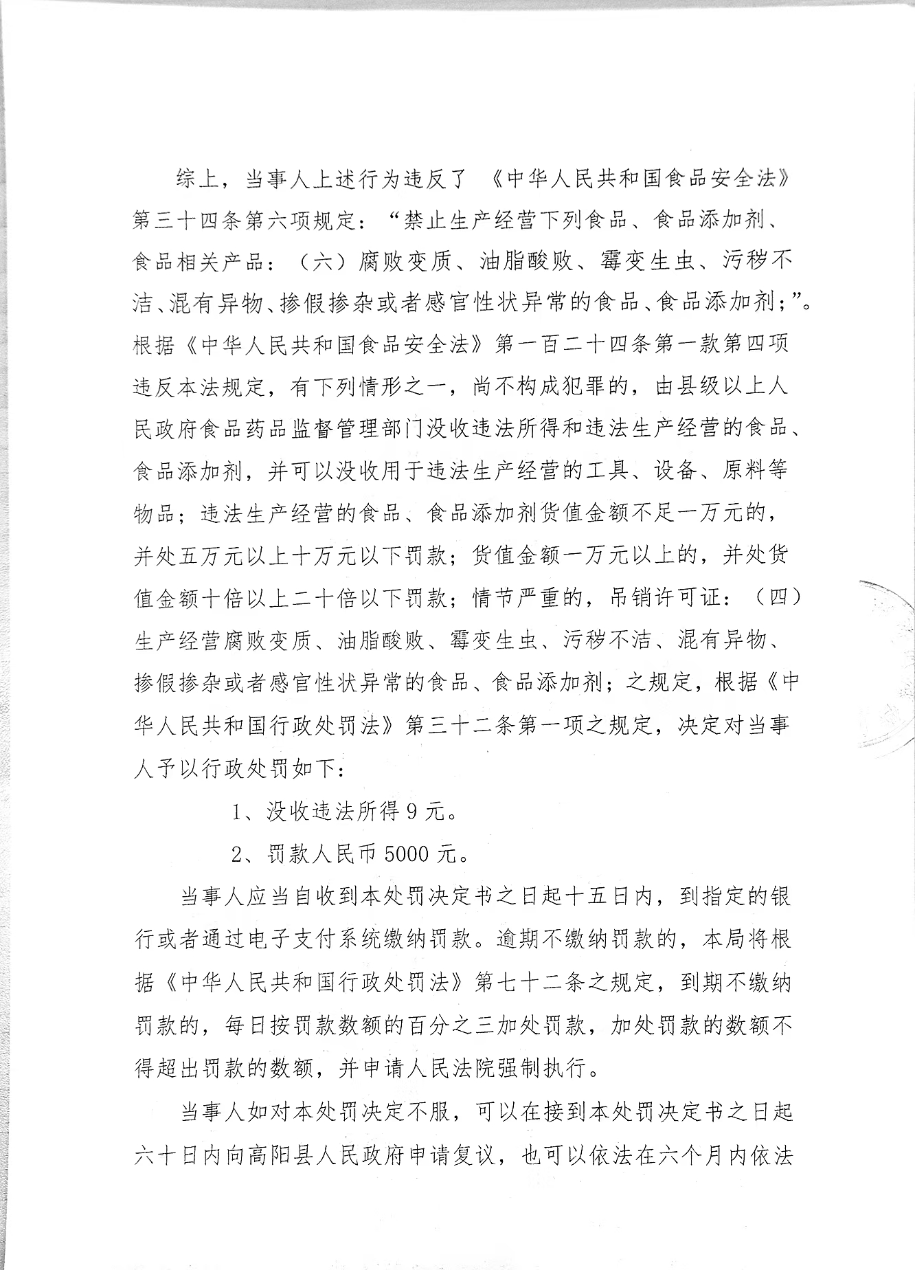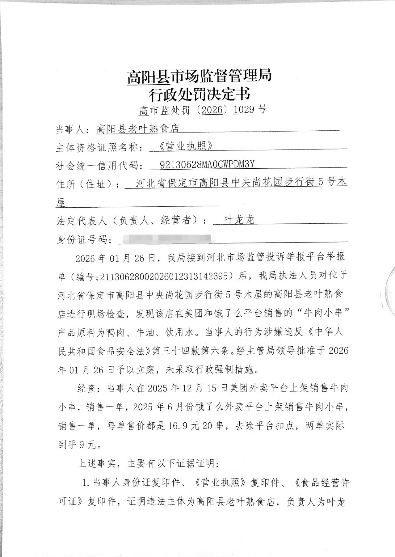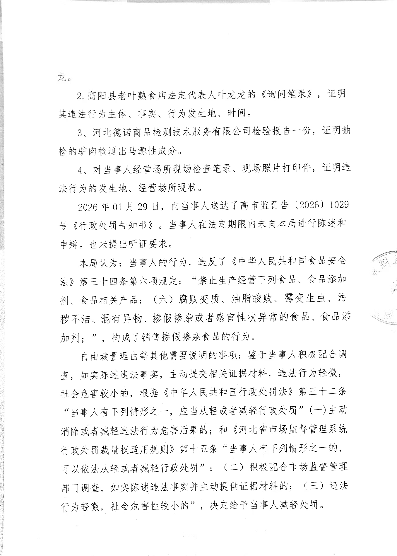 高阳县老叶熟食店涉嫌销售掺杂掺假食品案