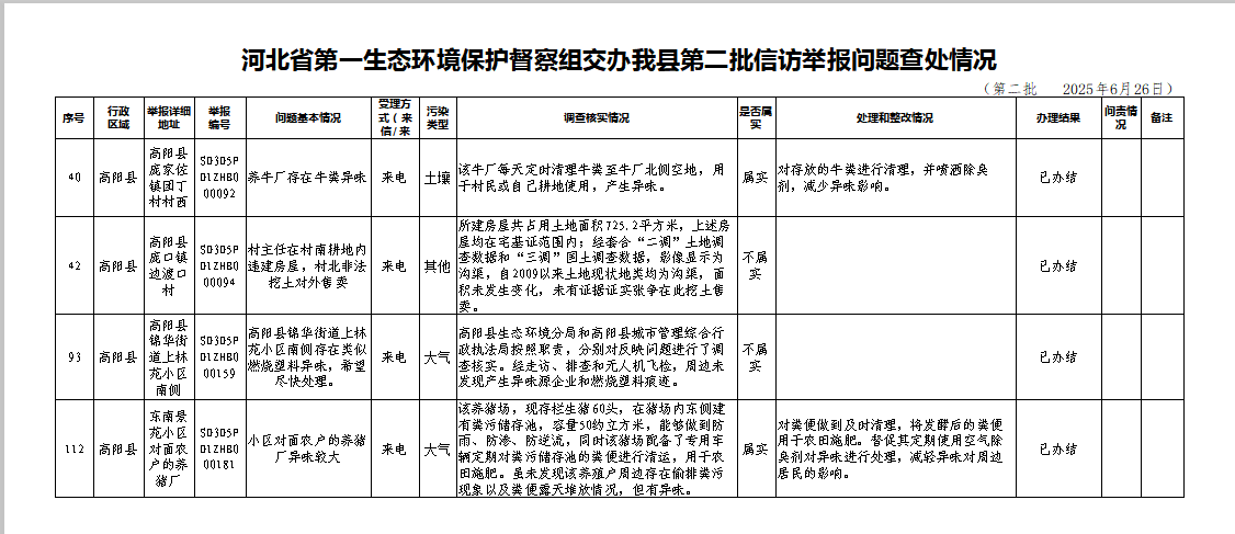 河北省第一生态环境保护督察组交办我县第二批信访举报问题查处情况