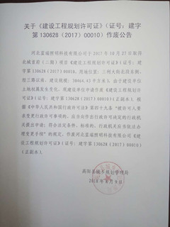《建设用地规划许可证》(证号:地字第130628(2017)00006、建字第130628(2017)00009、00010)作废公告