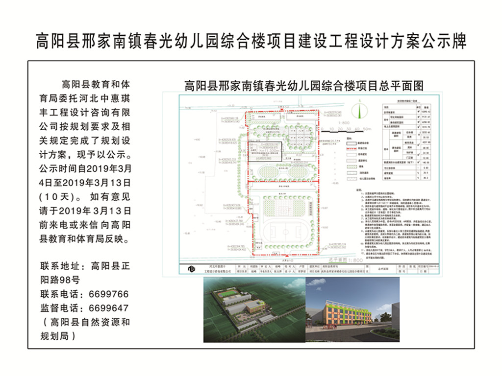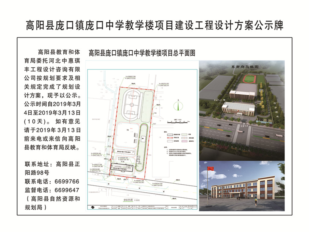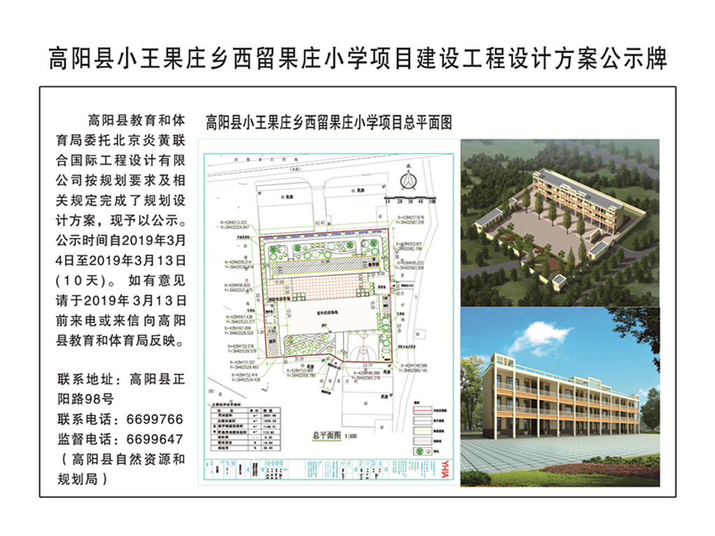高阳县晋庄镇苇元屯小学综合楼等11个项目建设工程设计方案公示牌