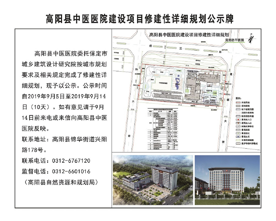 高阳县中医医院建设项目修建性详细规划公示牌