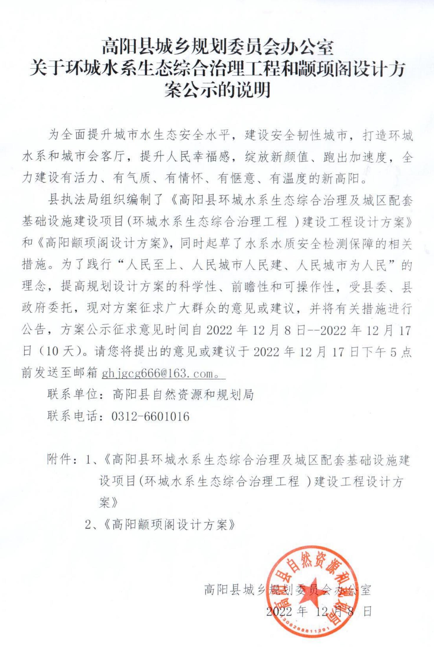 附件1:高阳县环城水系生态综合治理及城区配套基础设施建设项目(环城水系生态综合治理工程)建设工程设计方案