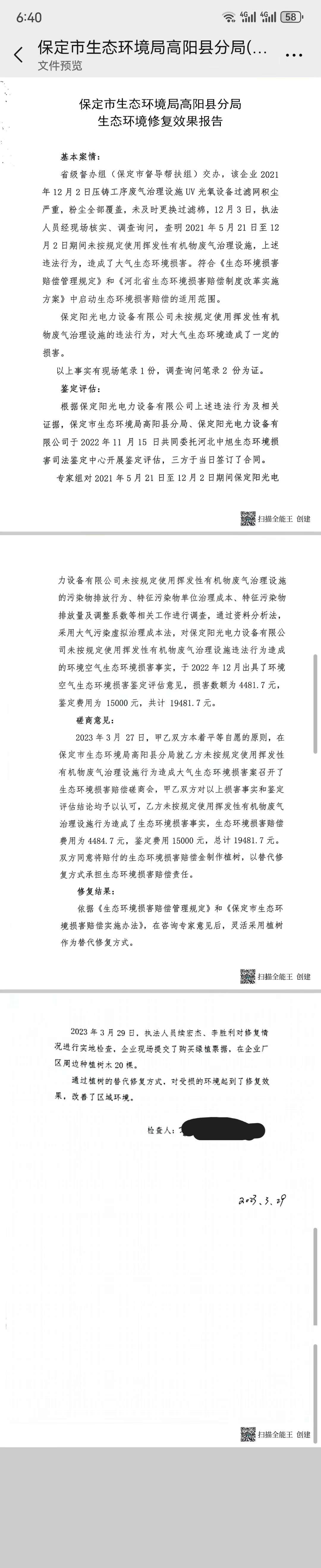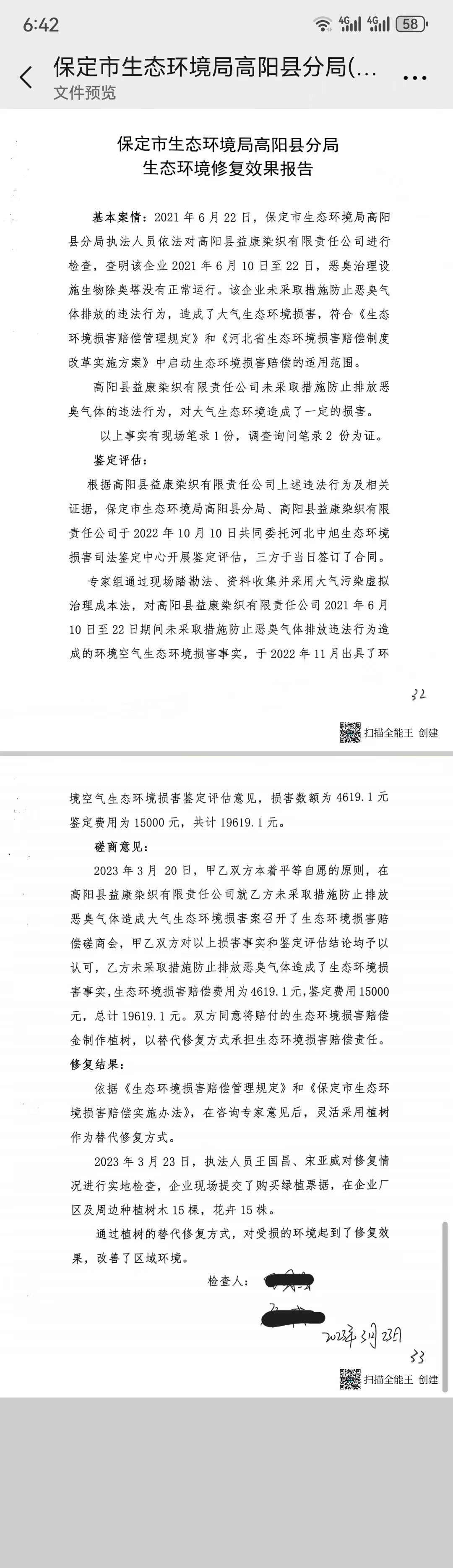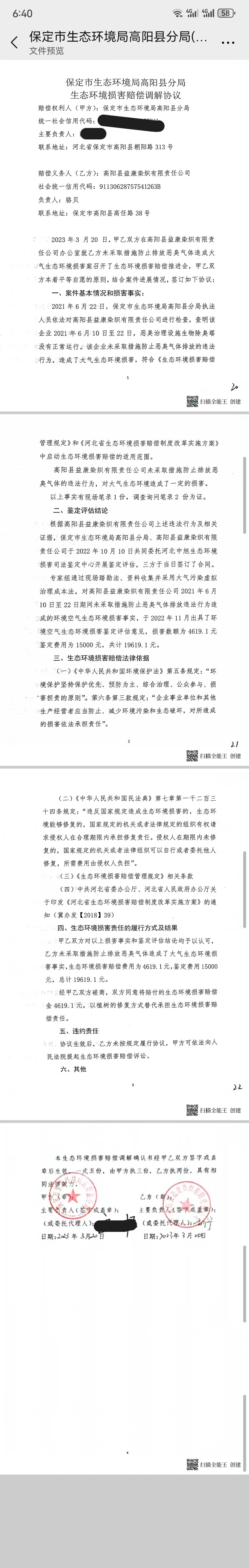 高阳县冀中染厂、保定阳光电力设备有限公司、高阳县益康染织有限责任公司生态环境损害赔偿协议及修复效果报告