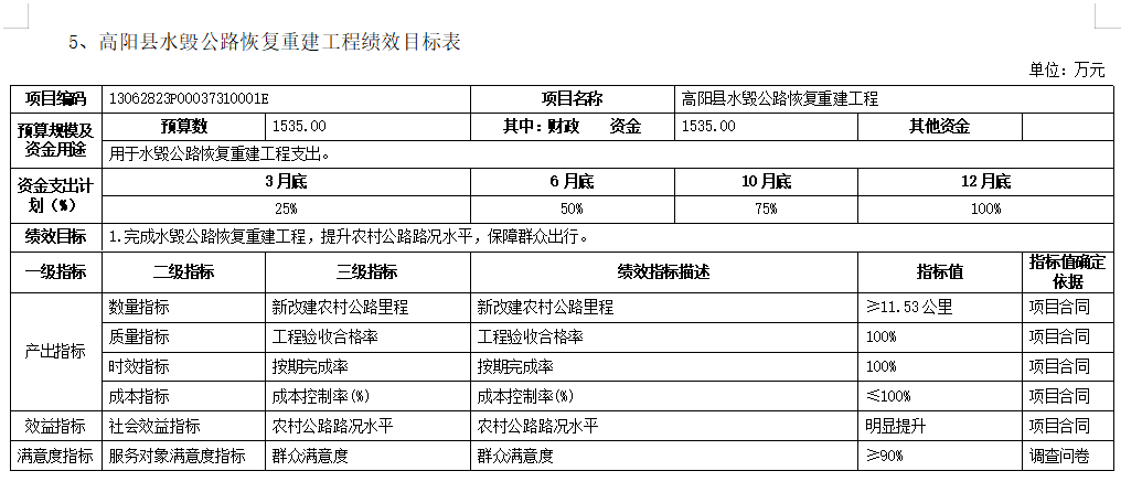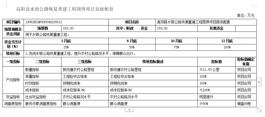 高阳县水毁公路恢复重建工程国债项目县级配套