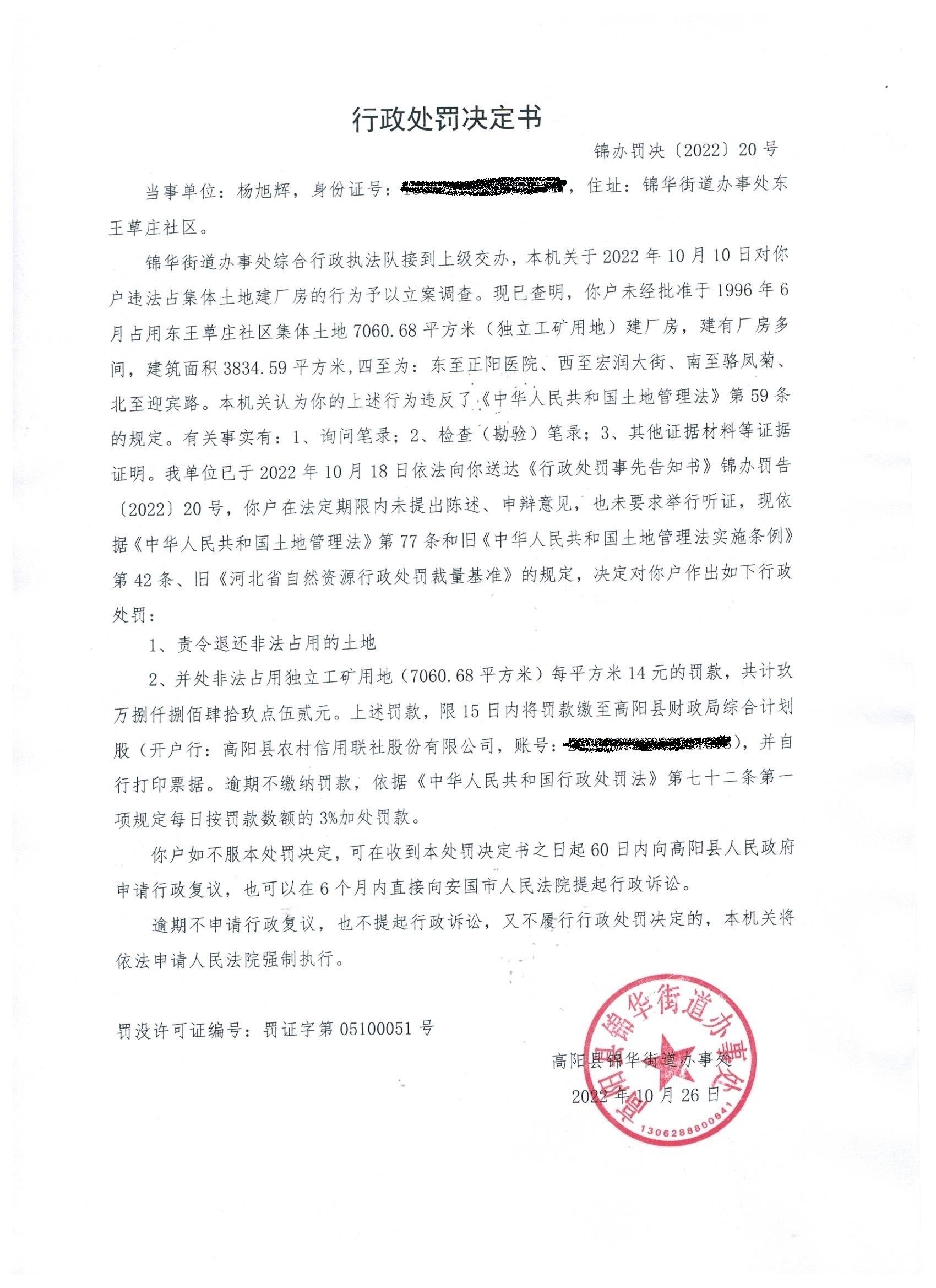 锦办罚决(2022)20号