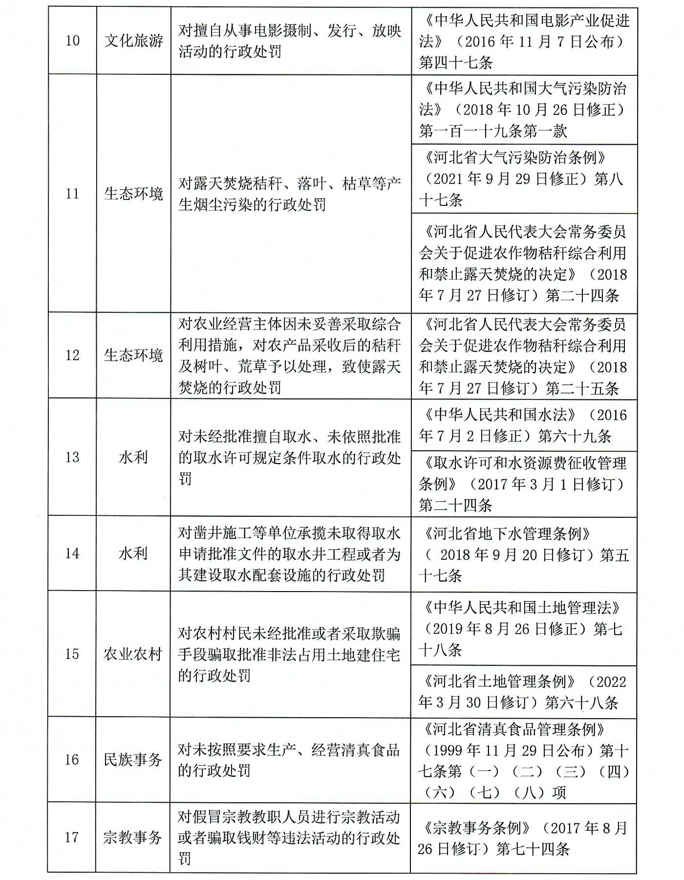 高阳县庞口镇人民政府执法事项清单
