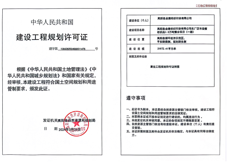 高阳县金腾纺织印染有限公司东厂区年染整纺织品1.5万吨整合项目(一期)、(二期)
