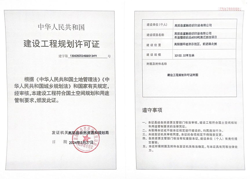 高阳县富融纺织印染有限公司年染整纺织品6000吨搬迁技改项目
