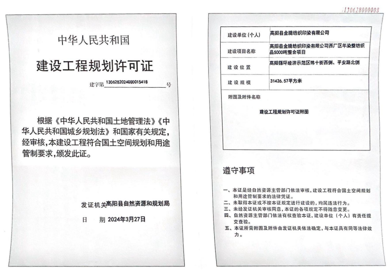 高阳县金腾纺织印染有限公司西厂区年染整纺织品5000吨整合项目