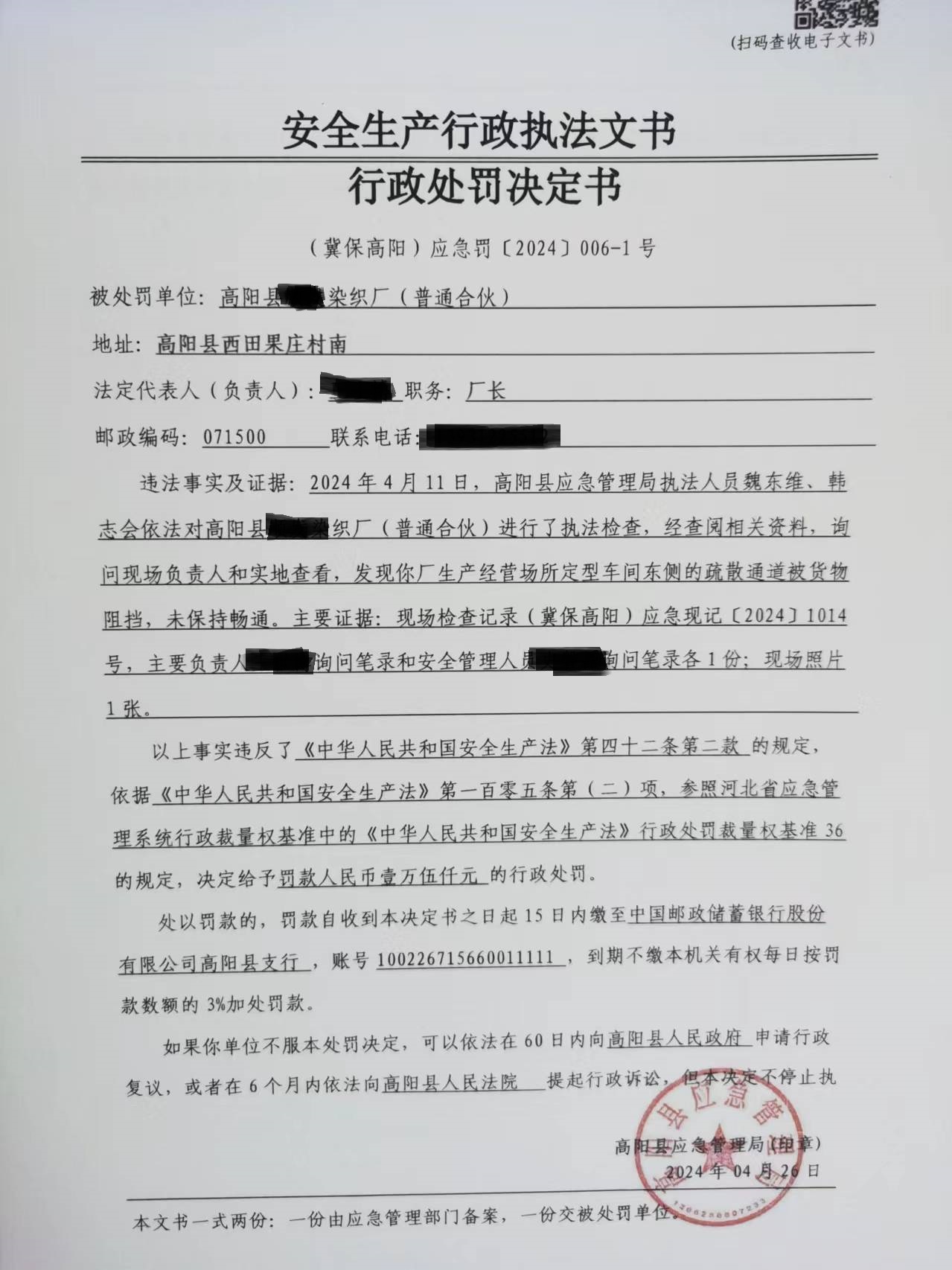 2024年高阳县应急管理局行政处罚决定书006 - 1