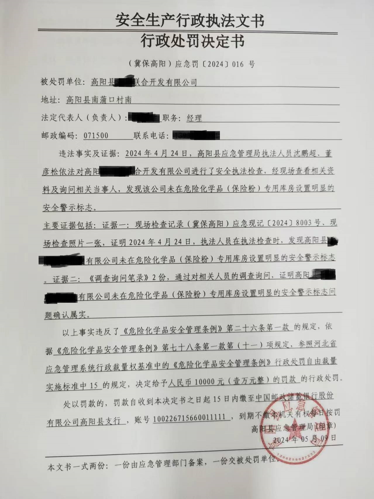 当前位置:首页 > 行政执法公示 > 高阳县应急管理局