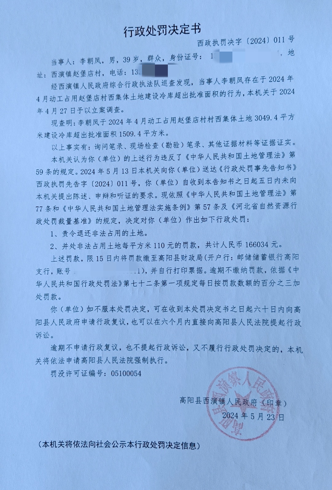 《行政处罚决定书》西政执罚决字〔2024〕011号