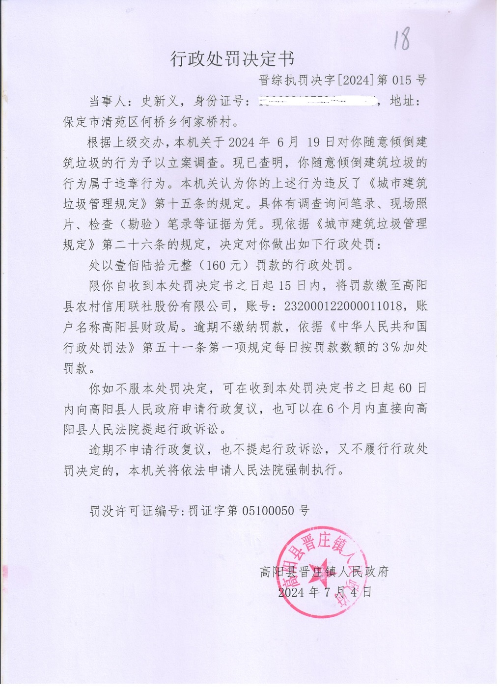 晋综执罚决字【2024】015号