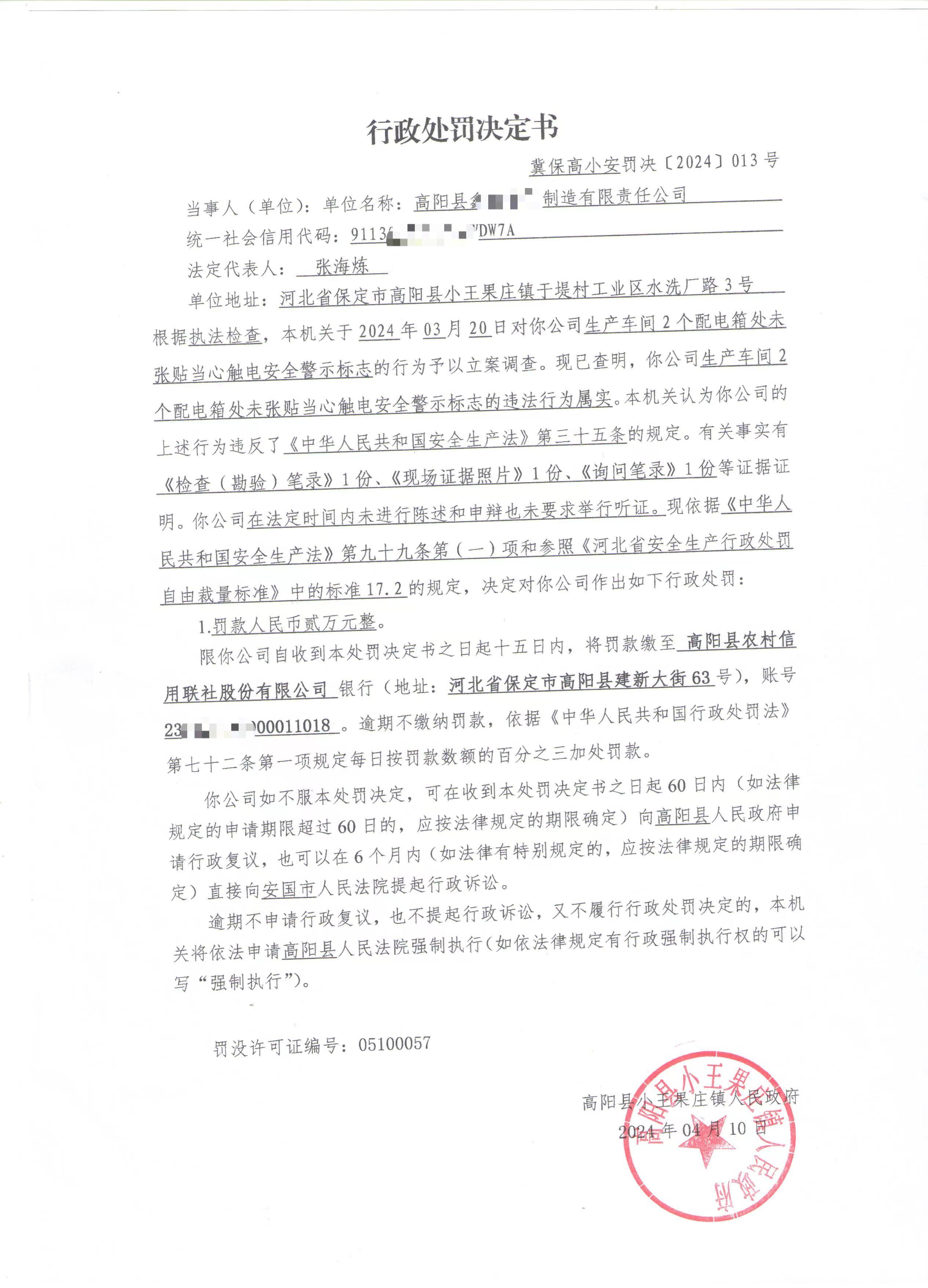 高阳县鑫扬窗纱制造有限公司安全生产案