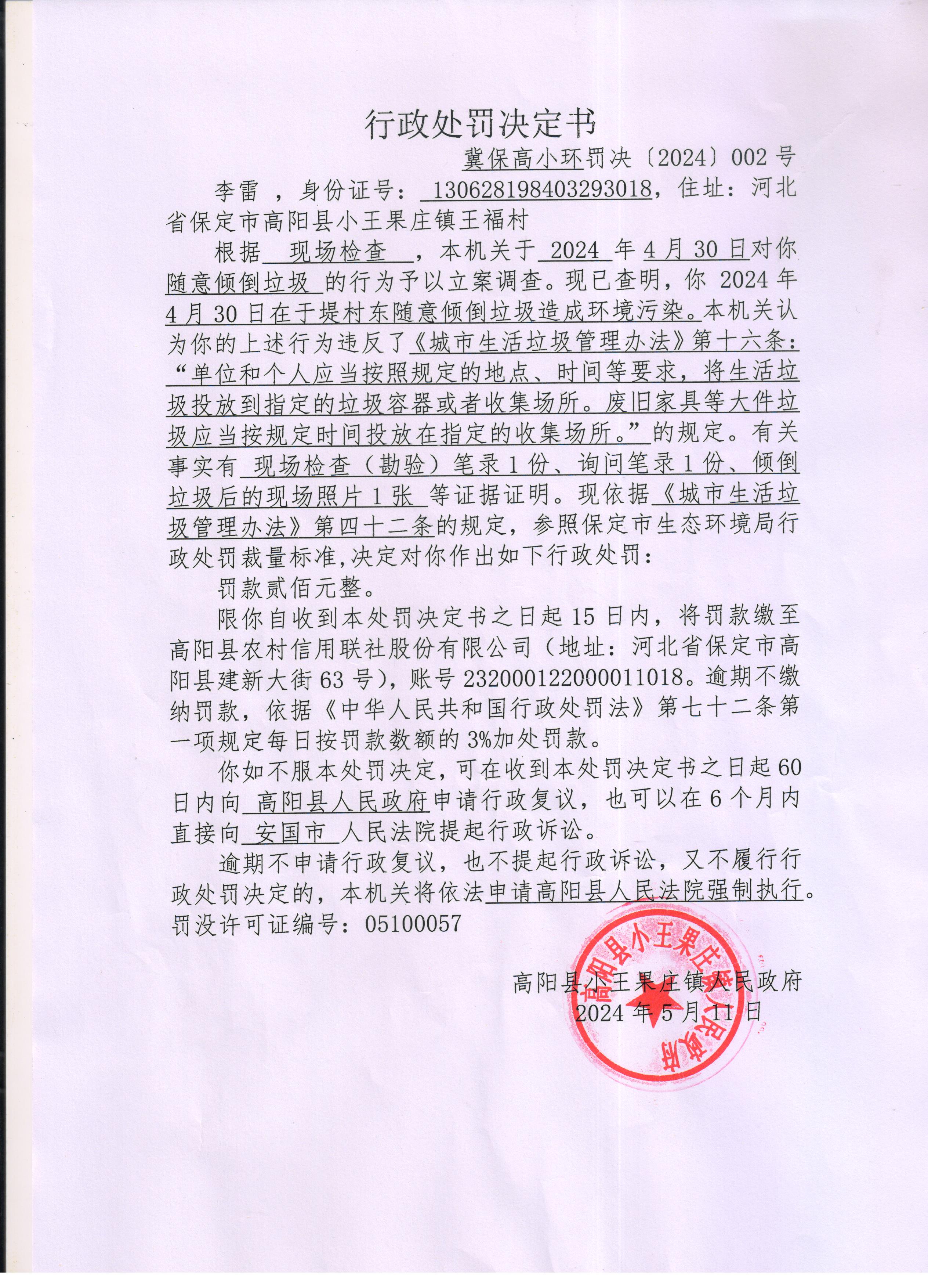 当前位置:首页 > 行政执法公示 > 高阳县小王果庄镇人民政府