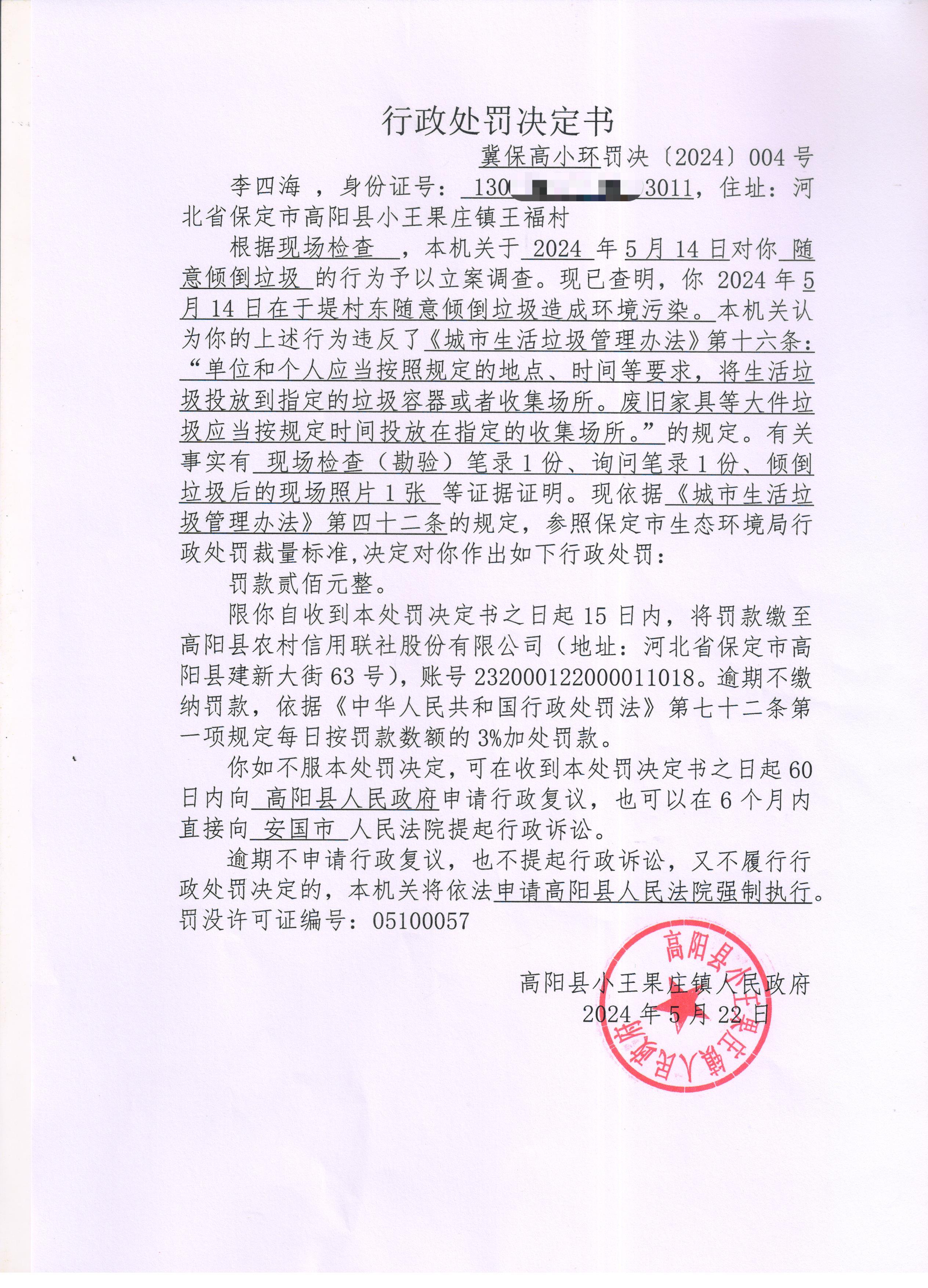 当前位置:首页 > 行政执法公示 > 高阳县小王果庄镇人民政府