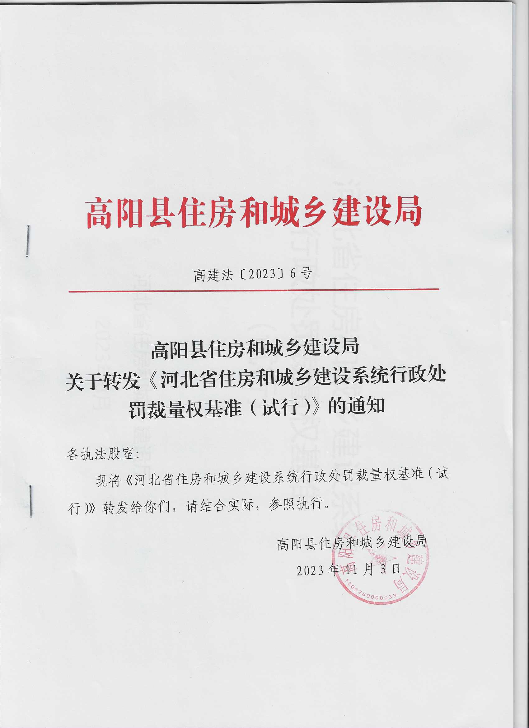 河北省住房和城乡建设系统 行政处罚裁量权基准 (试行)