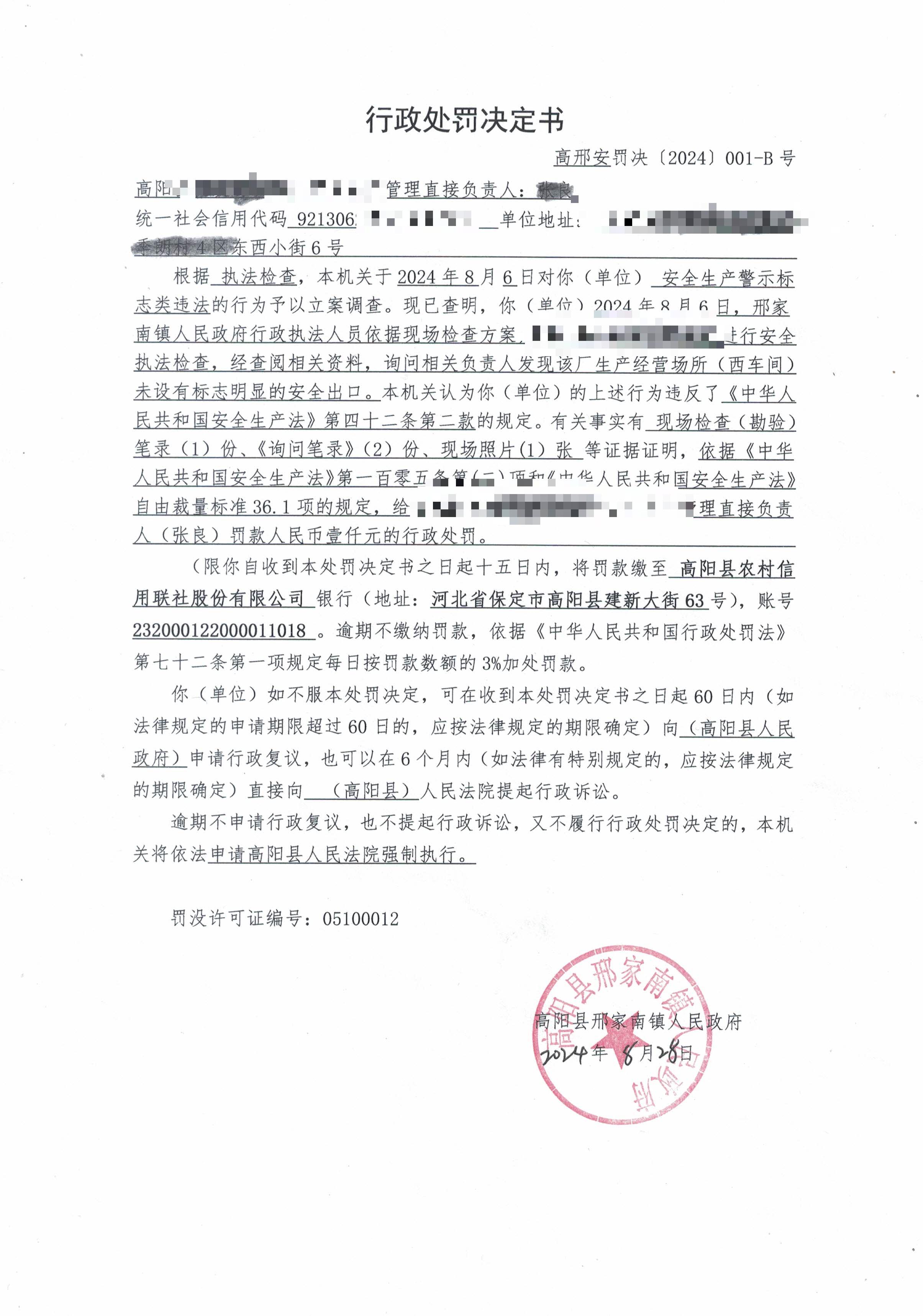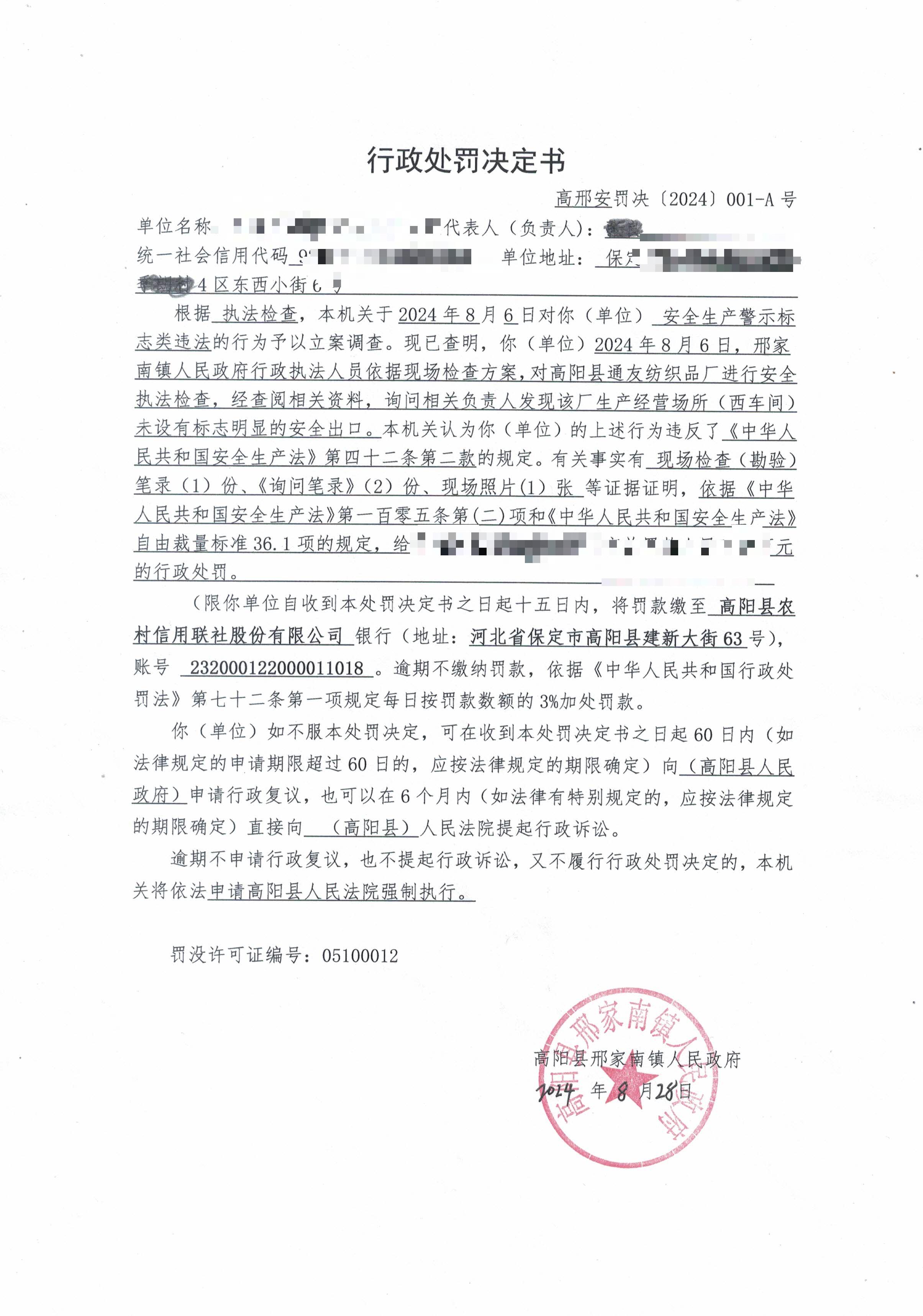 高邢安罚字【2024】001号