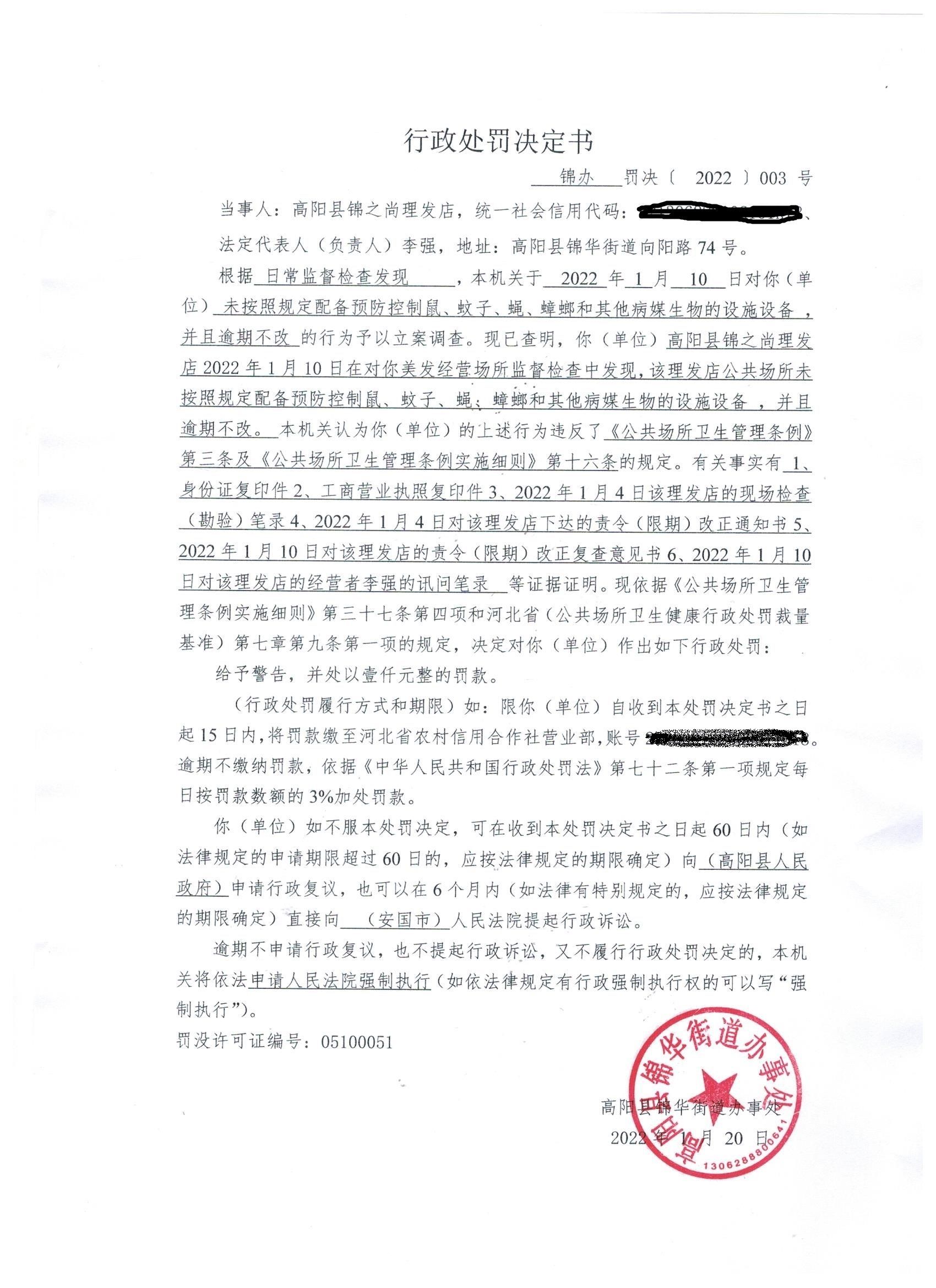 锦办罚决【2022】003号