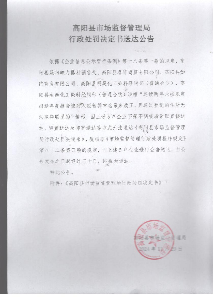当前位置:首页 > 行政执法公示 > 高阳县市场监督管理局