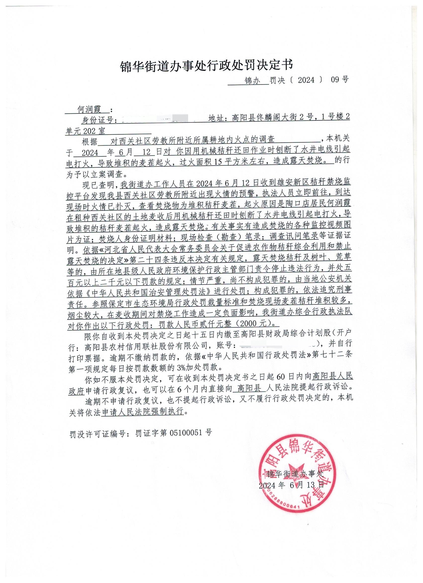 锦办罚决﹝2024﹞09号