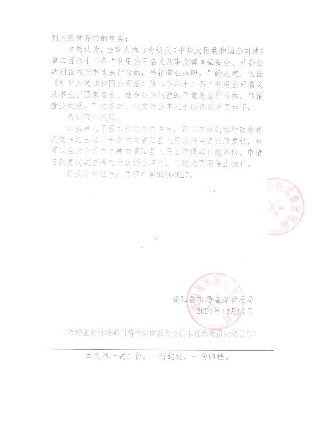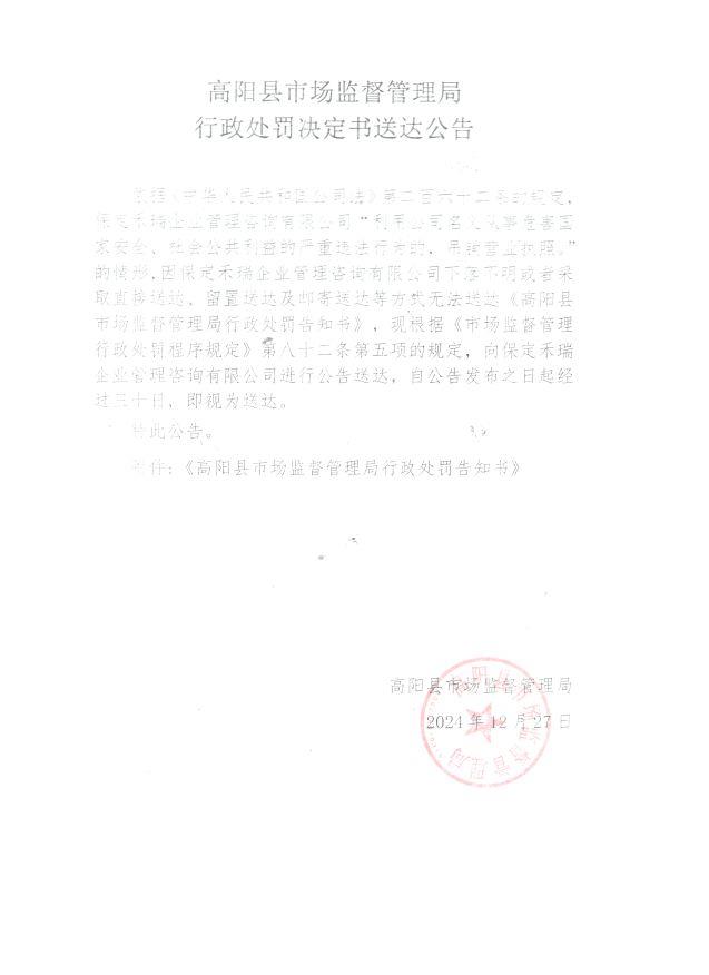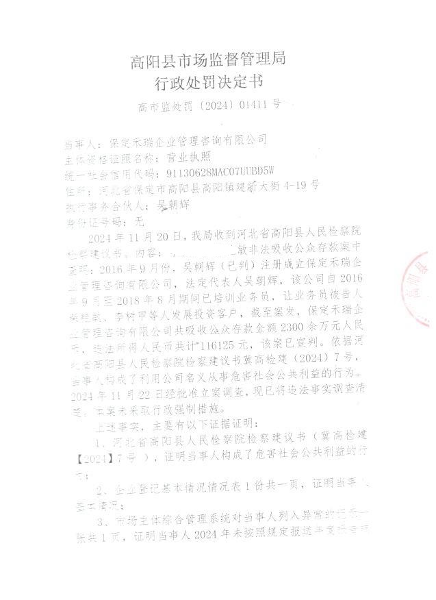 保定禾瑞企业管理咨询有限公司利用公司名义从事危害社会公共利益案