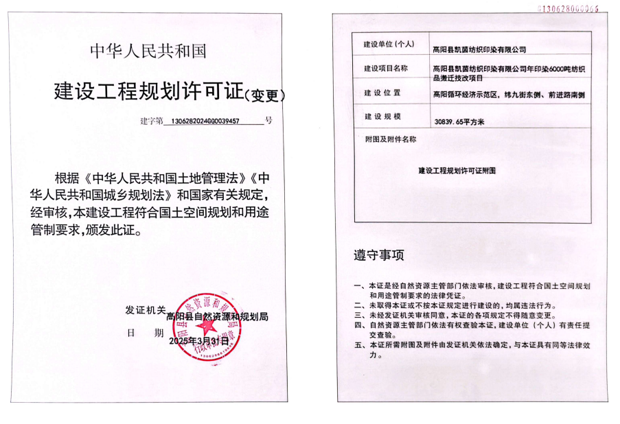 (变更)高阳县凯茵纺织印染有限公司年印染6000吨纺织品搬迁技改项目