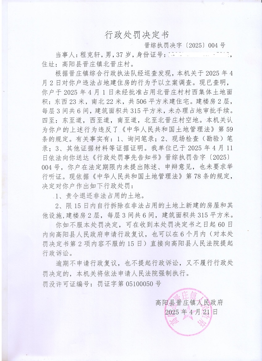 晋综执罚决字【2025】004号
