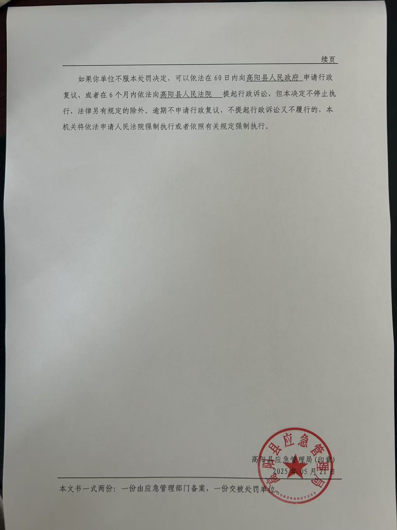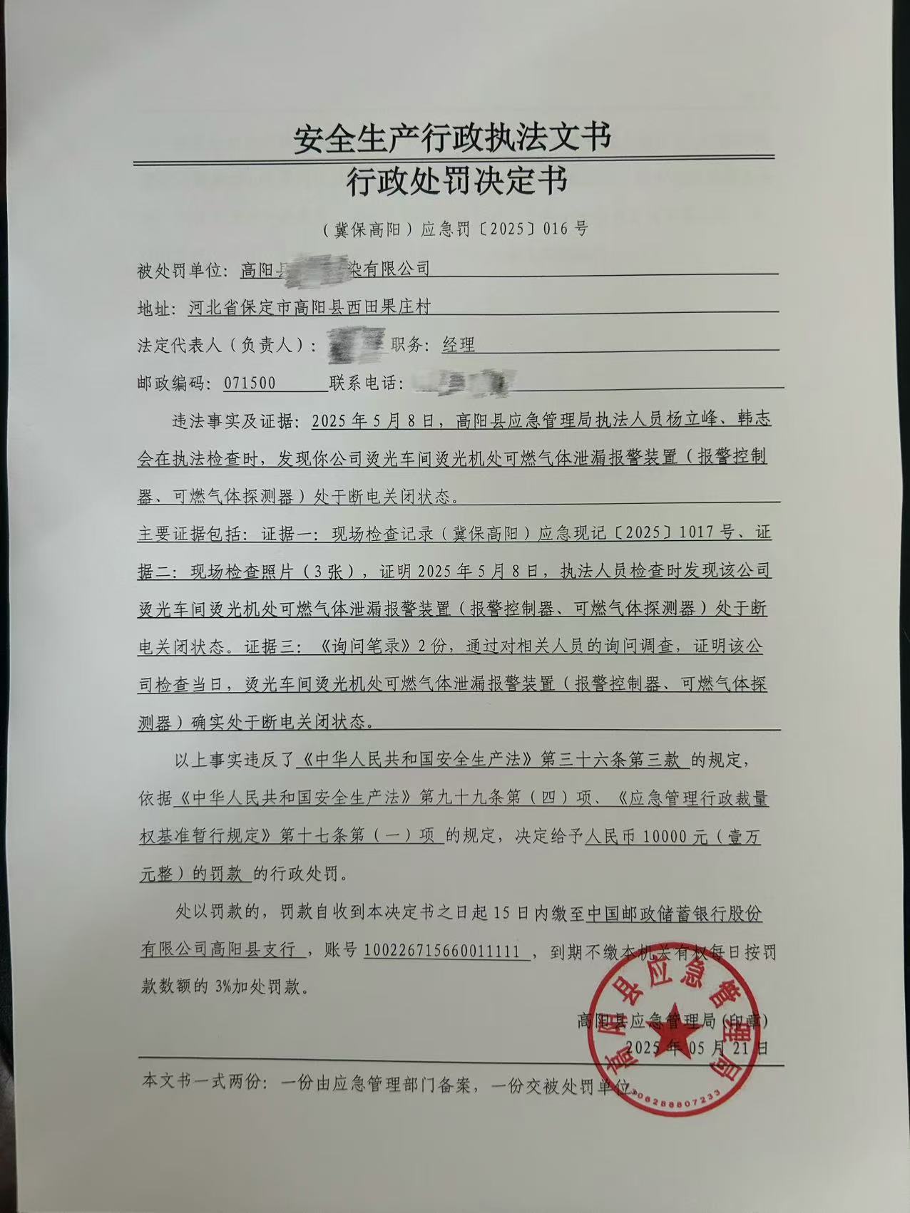 2025年高阳县应急管理局行政处罚决定书016