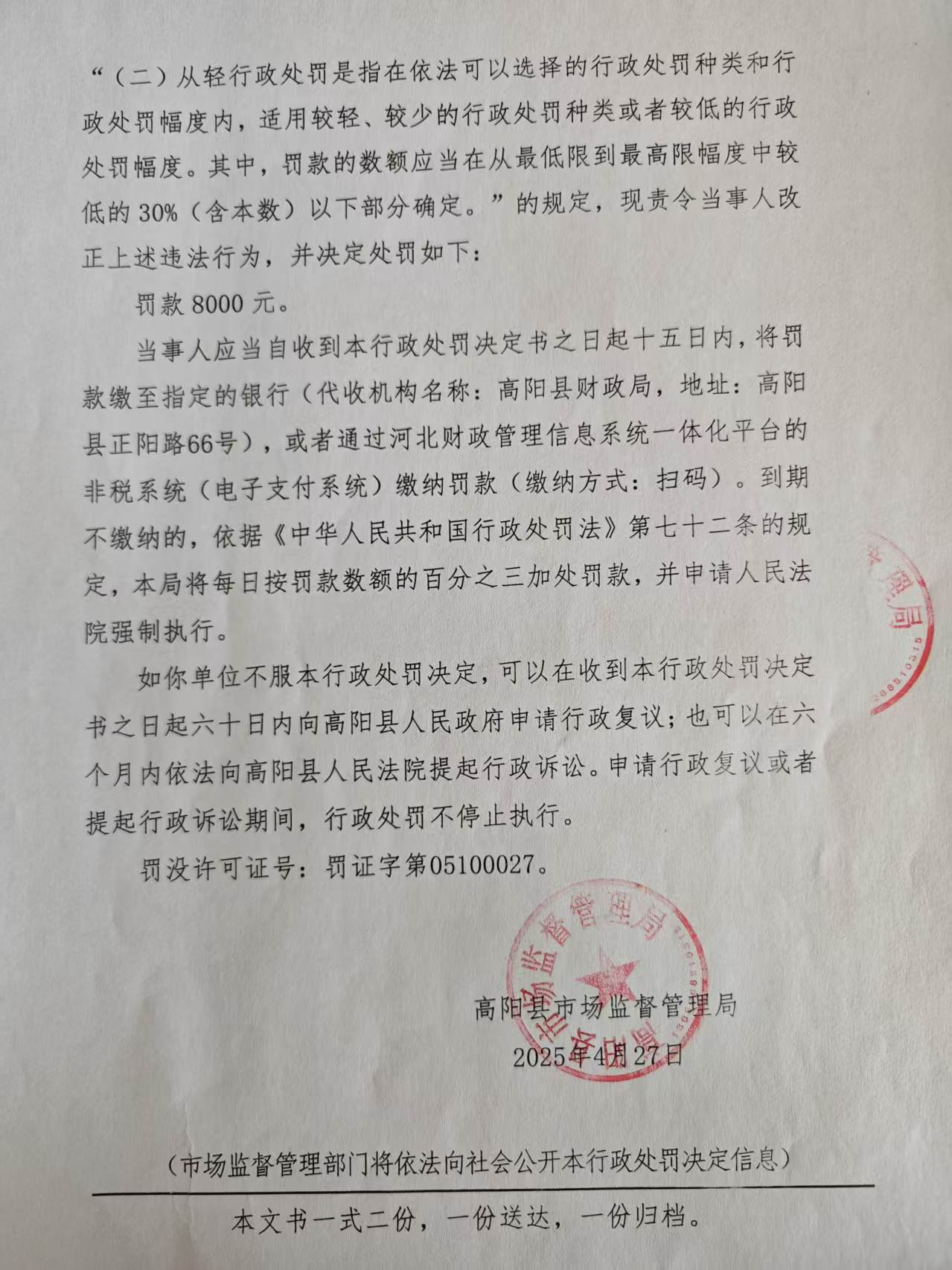 当前位置:首页 > 行政执法公示 > 高阳县市场监督管理局