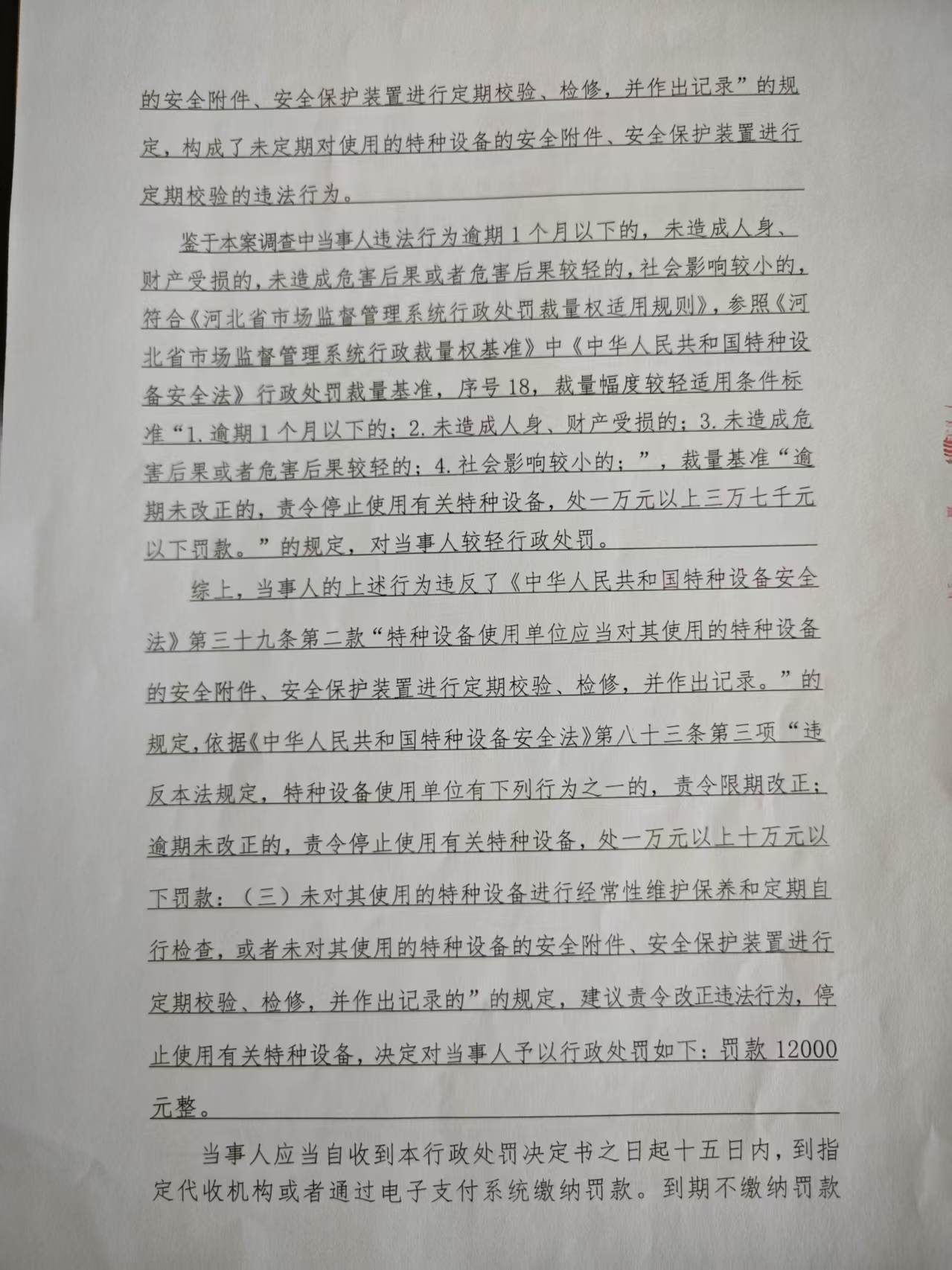 高阳县盛乐毛巾厂未对使用的特种设备的安全附件进行定期校验案