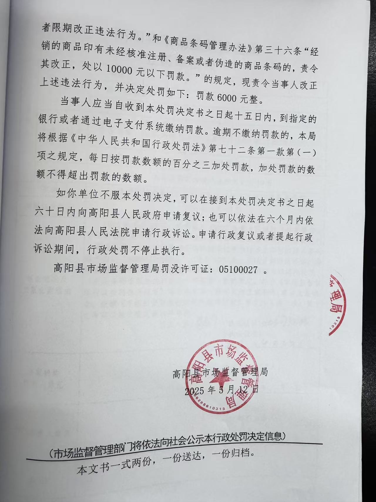 当前位置:首页 > 行政执法公示 > 高阳县市场监督管理局