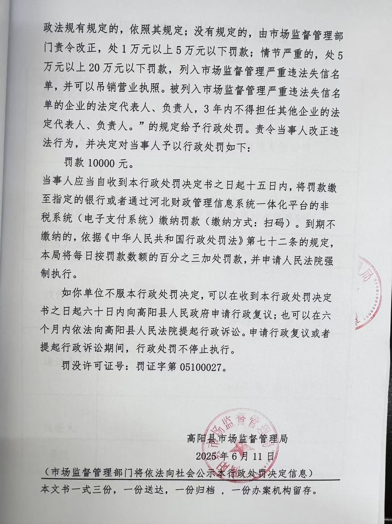 当前位置:首页 > 行政执法公示 > 高阳县市场监督管理局