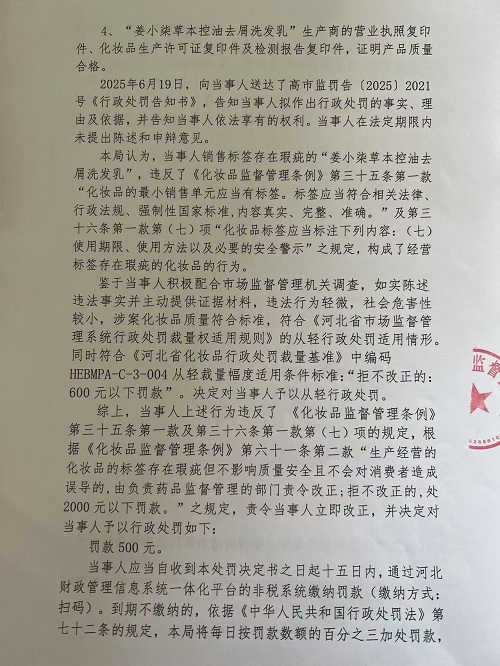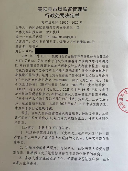 高阳县欧雅顿美容美发形象设计店经营标签存在瑕疵的化妆品案