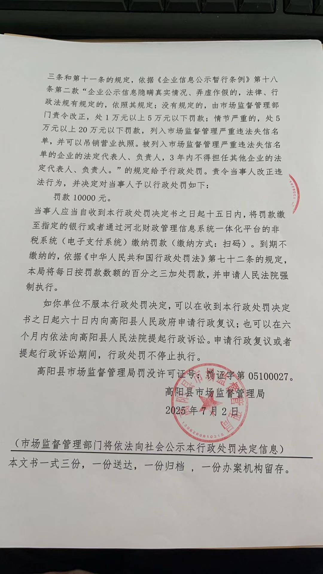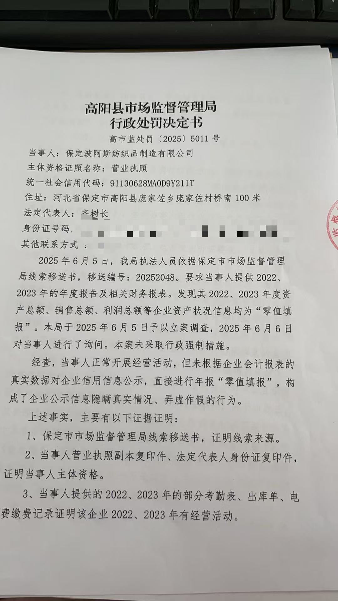 保定波阿斯纺织品制造有限公司企业公示信息隐瞒真实情况、弄虚作假案