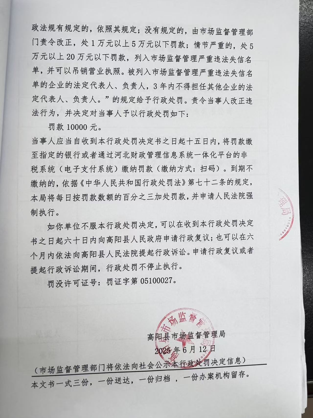 当前位置:首页 > 行政执法公示 > 高阳县市场监督管理局