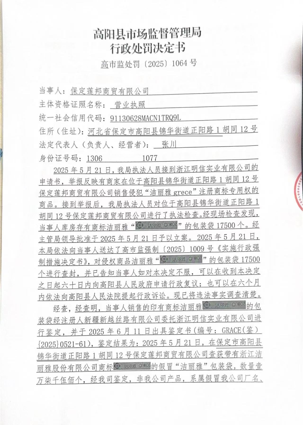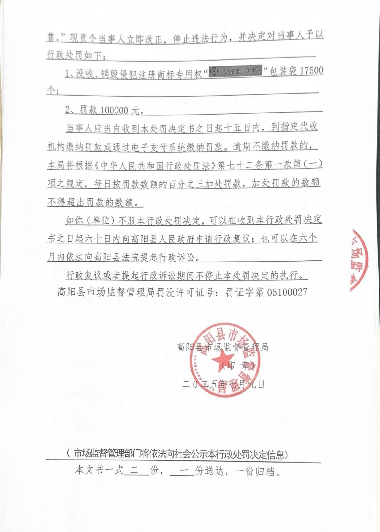 保定莲邦商贸有限公司销售侵犯注册商标专用权的包装袋案