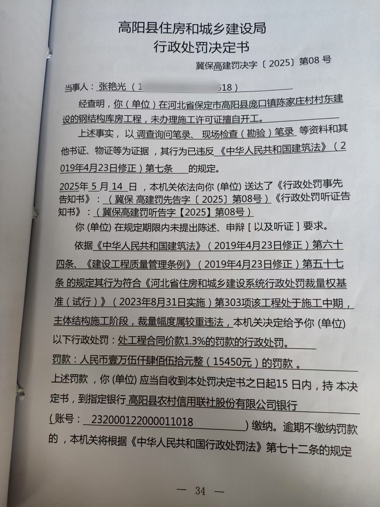 冀保高建罚决字【2025】第08号