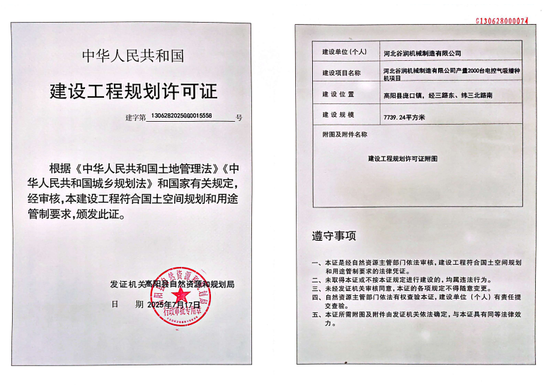 河北谷润机械制造有限公司产量2000台电控气吸播种机项目