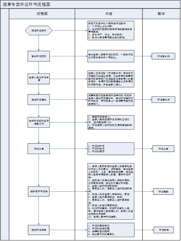 高阳县烟草专卖局烟草专卖听证环节流程图