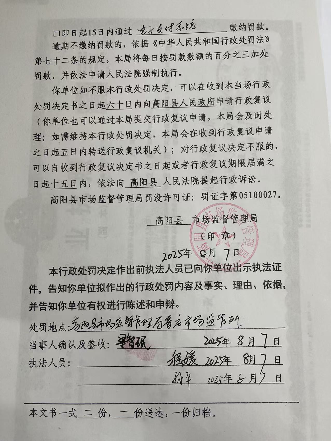 当前位置:首页 > 行政执法公示 > 高阳县市场监督管理局