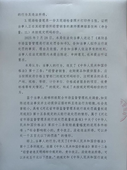 高阳县一群牛综合饮食服务超市销售的饮料未按规定明码标价案