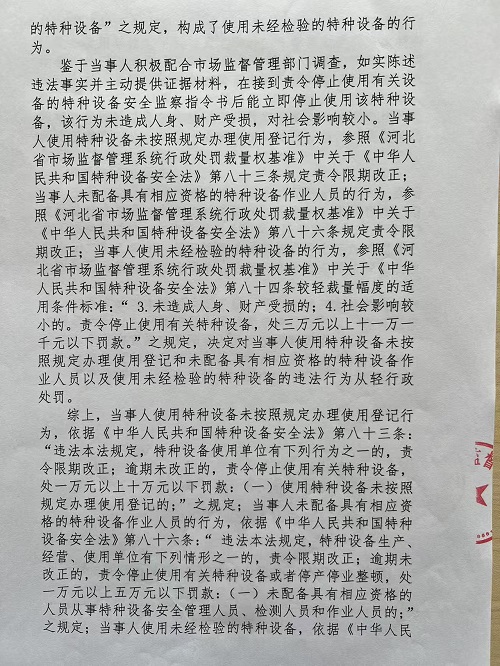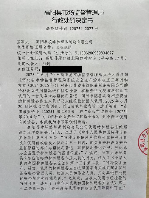 高阳县凌峰纺织品制造有限公司使用未经检验的特种设备案